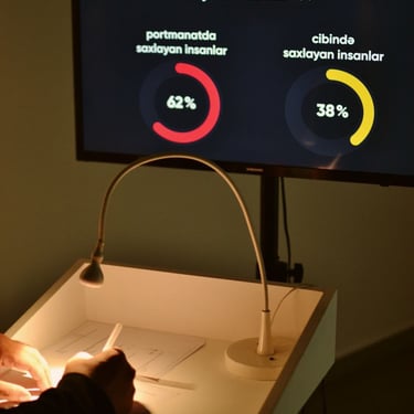 Burada sosial medianın hər gün insanlara müxtəlif sorğu və testlər vasitəsilə bəzi kateqoriyalara bölməyə necə məcbur etdiyini vurğulayır. Sərgi zamanı iştirakçılar kürsüyə yaxınlaşaraq qarşılarındakı kürsüdə sorğuda iştirak edərək qruplara bölünmüş və sərginin finisajında artıq yekun nəticə olaraq 500 insanın nəticələri faiz olaraq monitorda əks olunmuşdur
